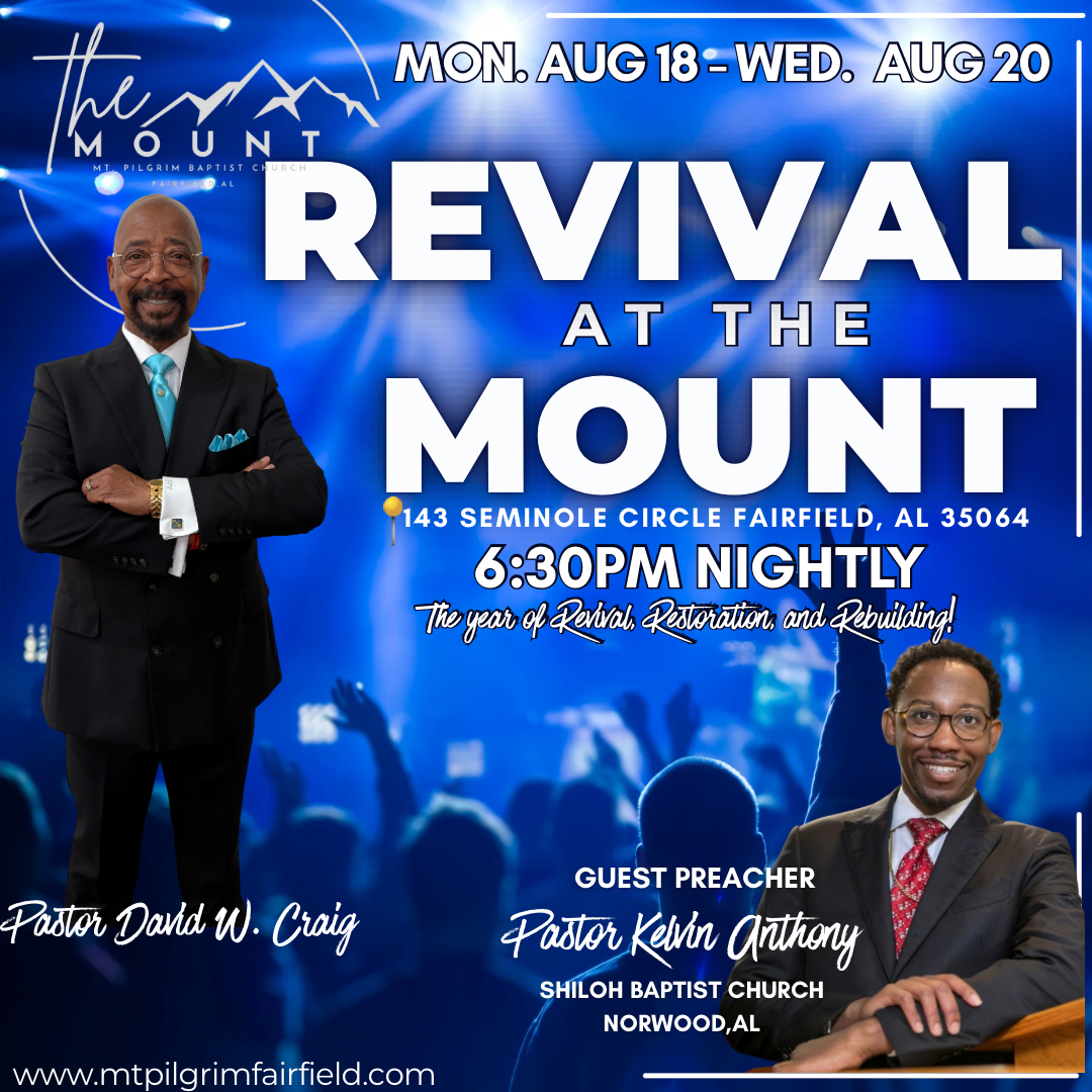 The Lord is at work in the Mt. Pilgrim Missionary Baptist Church. He is restoring hope to the hopeless, health to the hurting, strength to the faint-hearted and new life to those that are spiritually dead. Our Mission Statement is People Building Ministry, Building People for the Kingdom of GOD! Here we LOCATE the hurting, LEAD them to a personal relationship with God, assist them in LEARNING, involve them in the LABOR force and LOVE them unconditionally.